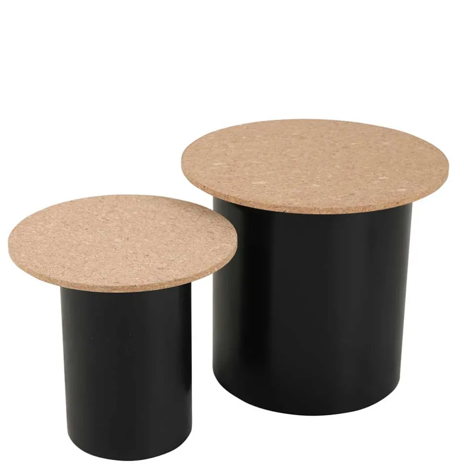 - Klasse Sofatisch Set in Schwarz und Kork Naturfarben