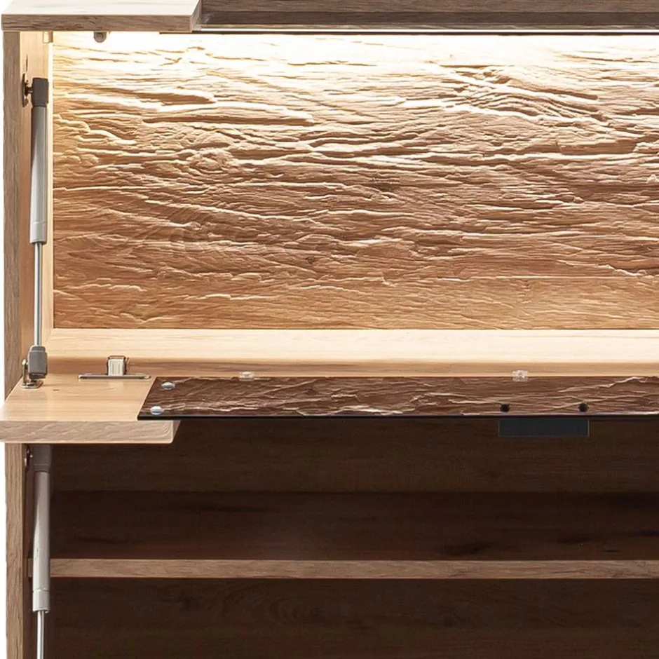 - HDF Rückwand innen in Holzoptik foliert, sichtbarer Teil in 3D Holzoptik sandgestrahlt beschichtet