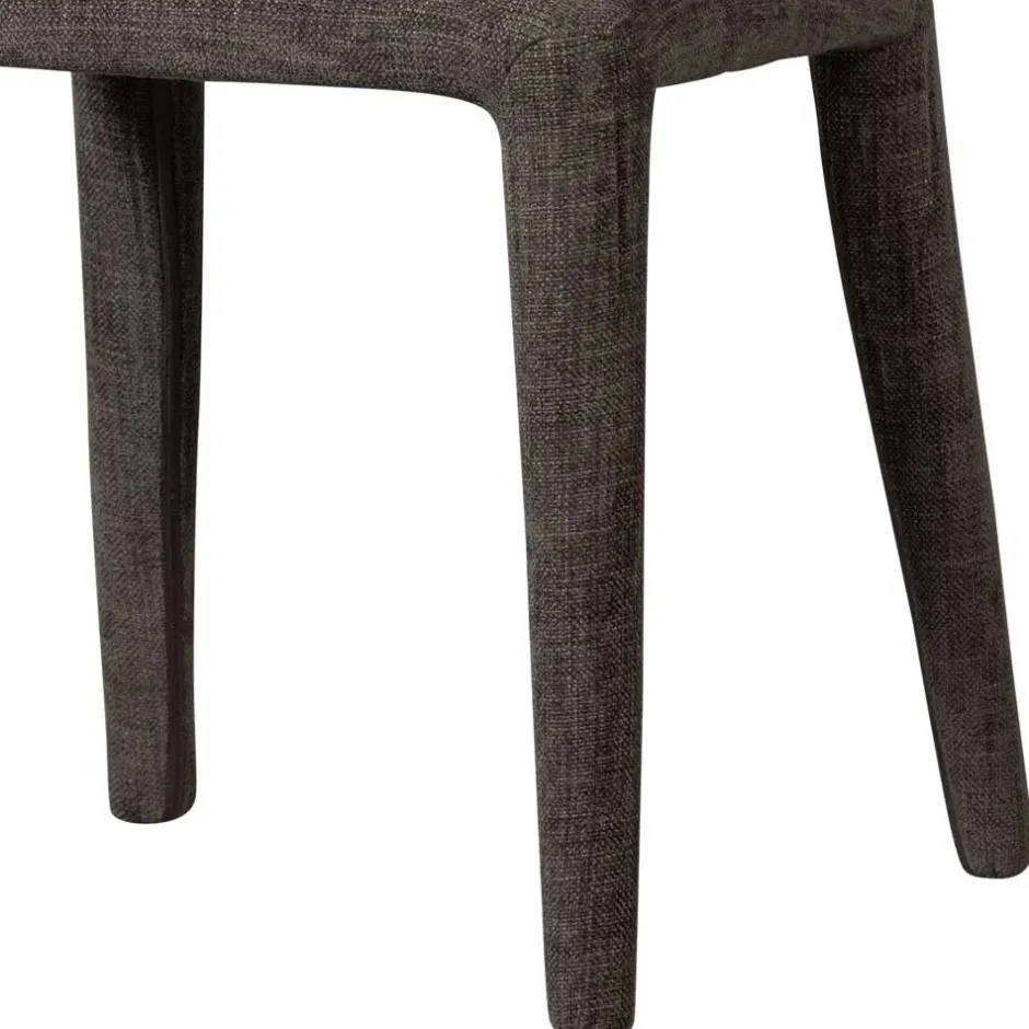 Die Designstühle sind vollständig mit einem melierten Webstoff aus 100 % Polyester bezogen. Das Material zeichnet sich durch eine beeindruckende Strapazierfähigkeit von 100.000 Scheuertouren nach Martindale aus – ideal für den täglichen Gebrauch. Eine weiche Polsterung mit Schaumstoff sorgt für hohen Sitzkomfort und lädt zu langen Gesprächen am Esstisch ein. Die stabile Unterkonstruktion garantiert eine Tragfähigkeit von bis zu 120 kg und macht die Stühle besonders robust. Selbst das Fußgestell ist gepolstert und komplett mit dem edlen Stoffbezug versehen.