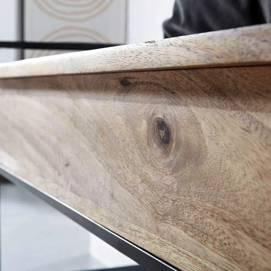 - Attraktive Garderobenbank in Mangoholz Naturfarben und Schwarz