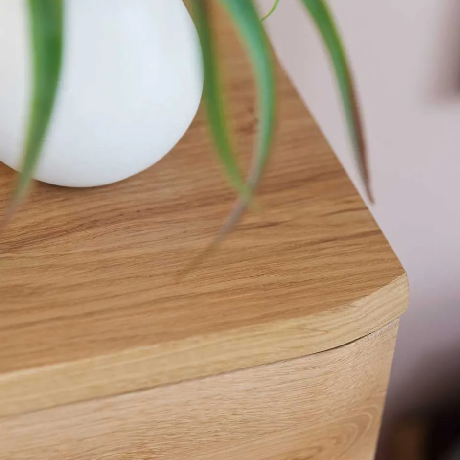 - Gefertigt aus Eiche Massivholz (Front) und Spanplatte (Korpus)