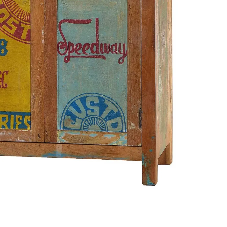 - Lackierte, pflegeleichte Oberfläche, Fronten mit Schriftzügen im Design von alten Werbungen