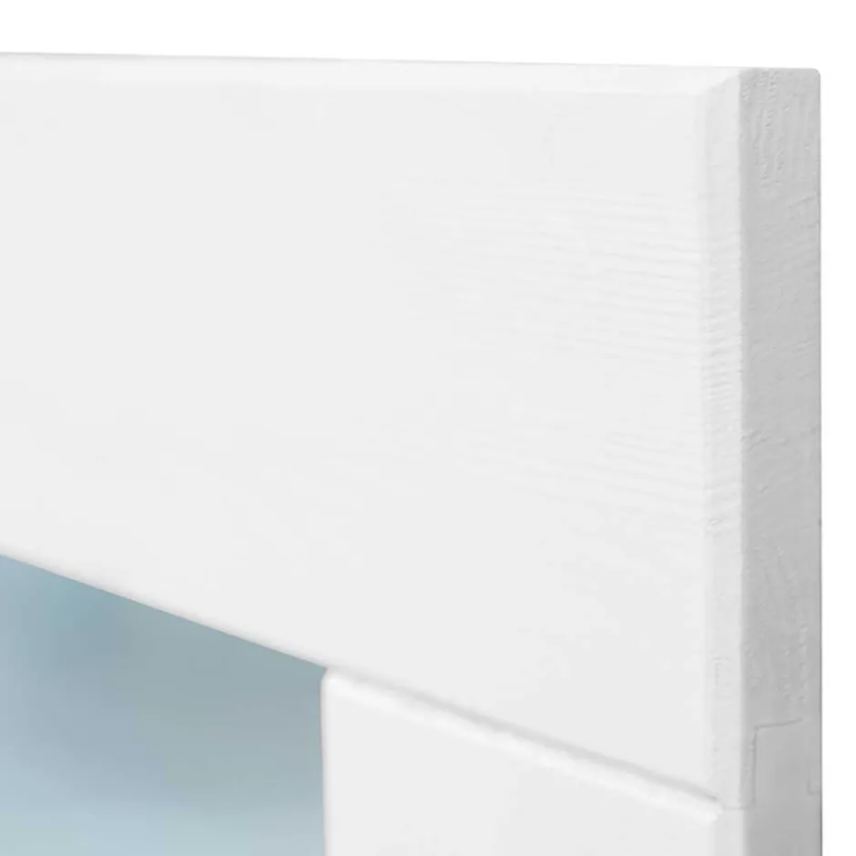 Die Holz-Oberflächen in Reinweiß (RAL 9010) lackiert, betonen die natürliche Schönheit des Kiefernholzes. Die durchscheinende Maserung verleiht dem Spiegel einen individuellen Charakter. Diese Lackierung schützt das Holz nicht nur, sondern erleichtert auch die Reinigung und erhält das ansprechende Erscheinungsbild des Spiegels über Jahre.