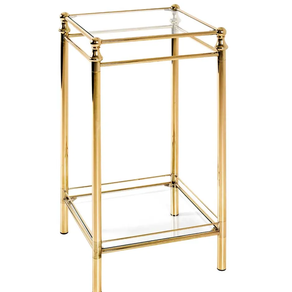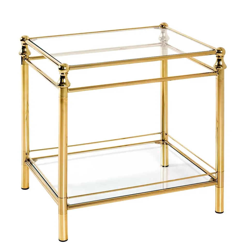 - In Bodennähe eine zusätzliche Glasablage mit zierlicher Reling