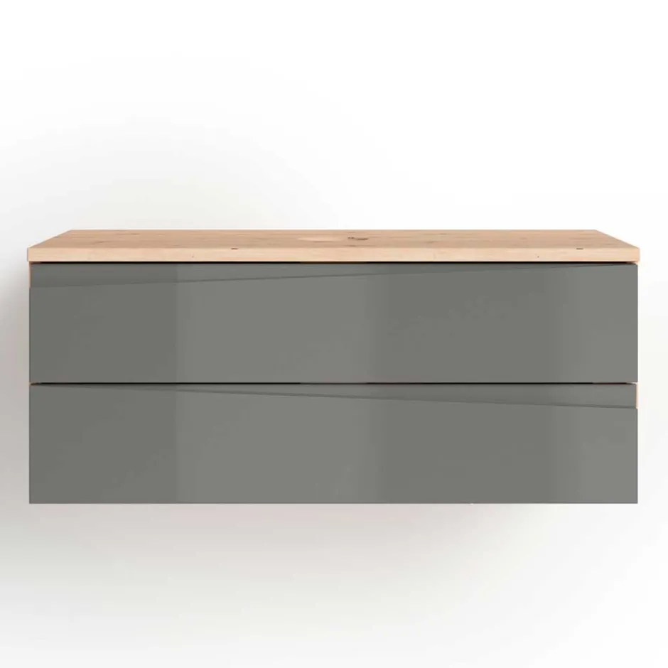 Verleihen Sie Ihrem Badezimmer eine zeitlose Note mit unserem hängenden Waschtisch „Join“. Gefertigt aus hochwertiger Spanplatte (Korpus) und MDF (Front) präsentiert sich dieses Möbelstück in edlem Wildeichefarben und Anthrazit. Das moderne Design und die hochglänzend lackierte Front setzen stilvolle Akzente, die Ihr Badezimmer in eine Wohlfühloase verwandeln.