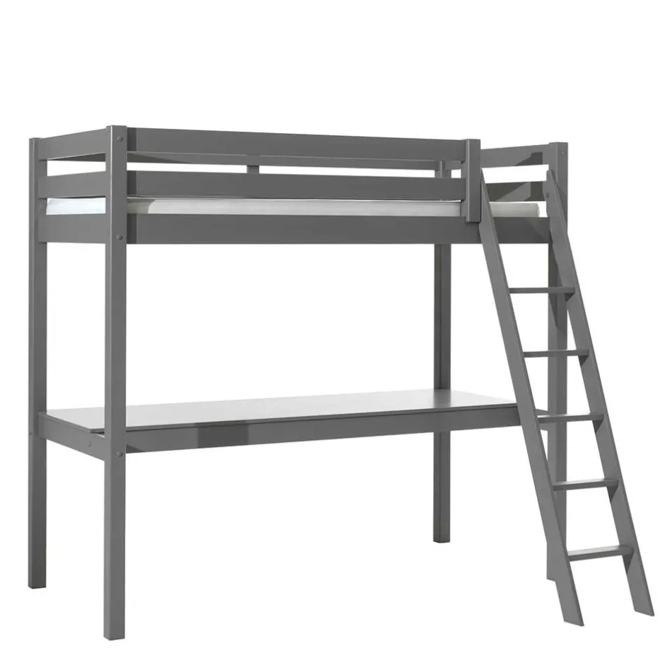 Kinder Wohnen Graues Hochbett mit Schreibtisch Arbeitsplatz – Tollow