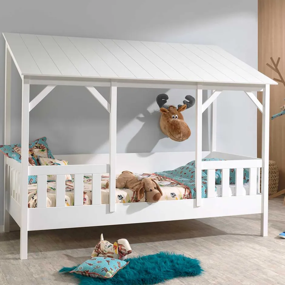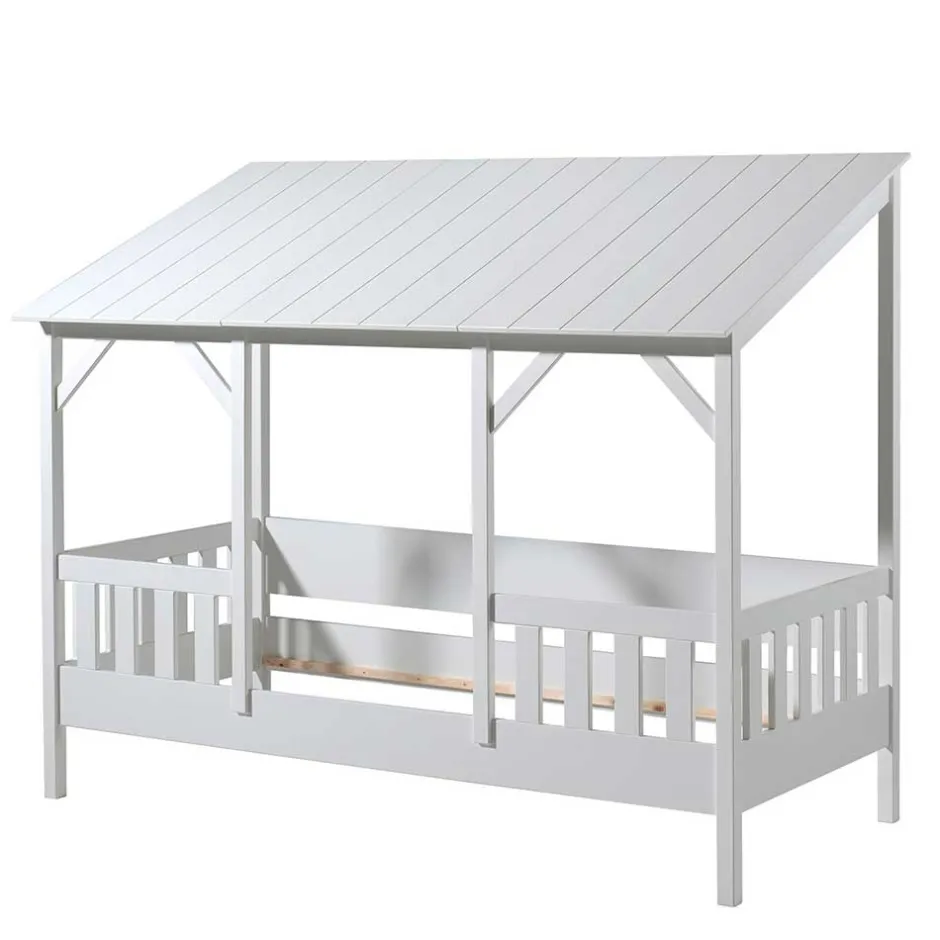 Mit seinem kreativen Haus-Design lässt das Bett „Zanoas“ der Fantasie freien Lauf. Ob als gemütliche Schlafstätte oder als Spielhöhle, die vielseitige Gestaltung bietet Kindern jede Menge Raum für kreative Rollenspiele und Abenteuer. Das authentische, nach vorne abfallende Dach und die dekorative Umrandung verleihen dem Bett nicht nur eine einzigartige Optik, sondern schaffen auch eine behagliche Atmosphäre, in der sich Ihr Kind rundum wohlfühlen wird.