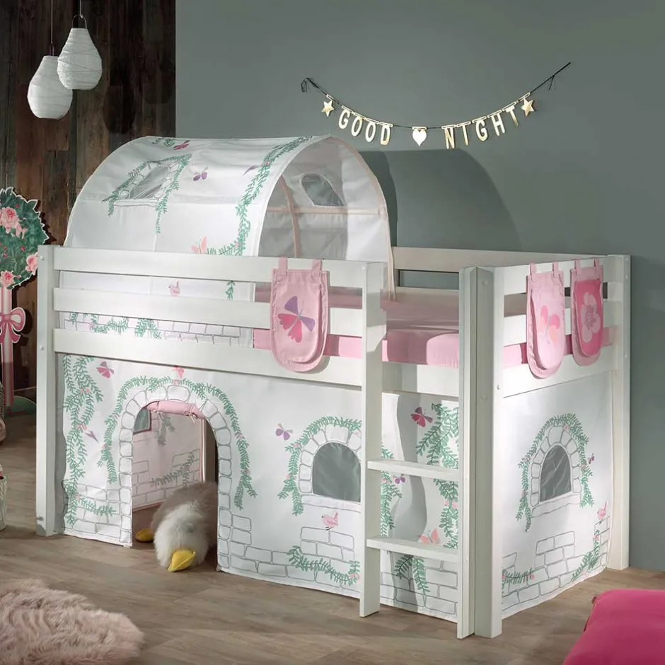 - Märchenhaftes Kinder-Hochbett in Weiß, Grün, Rosa und Cremeweiß