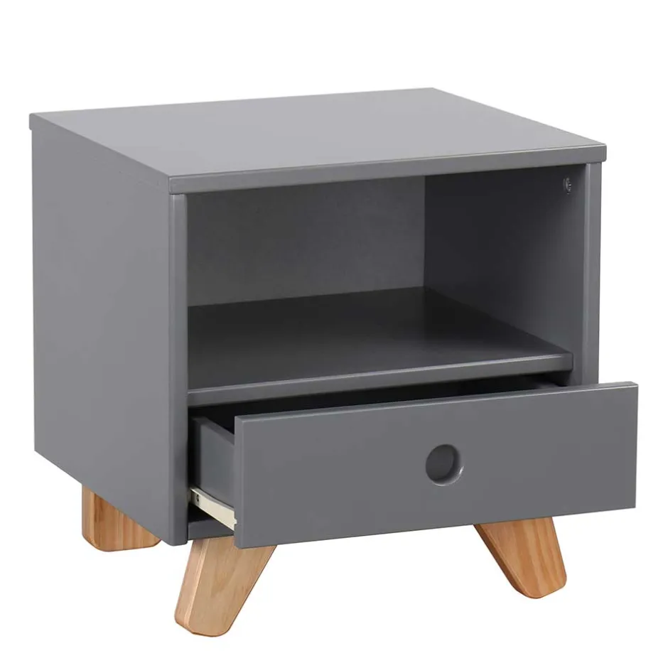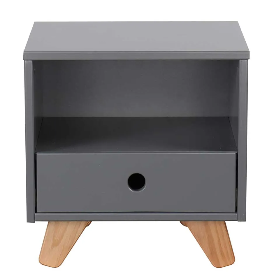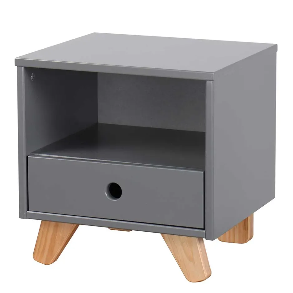 - Formschöne Nachtkonsole in Grau und Pinie Naturfarben