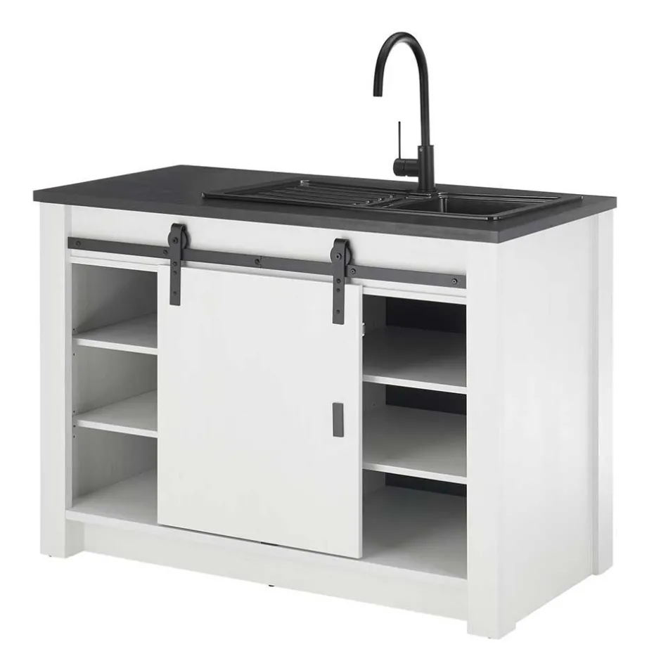 - Wohnliche Küchenmöbel in Pinie Weiß und Antrazit