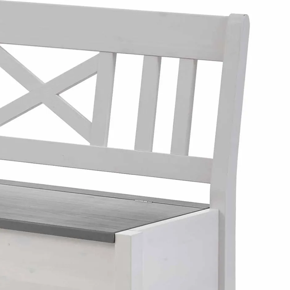 Warmes Holz, liebevolle Details und eine charmante Optik – die Eckbank „Yoan“ bringt den behaglichen Landhausstil in Ihr Zuhause. Dieser Stil steht für Natürlichkeit, Geborgenheit und eine Atmosphäre, die zum Verweilen einlädt. Die Kombination aus weiß lackierten Flächen und einer grau gebeizten Sitzfläche mit durchscheinender Maserung verleiht dieser Sitzbank einen authentischen und hochwertigen Look. Perfekt für alle, die einen Hauch von Nostalgie mit modernem Wohnkomfort verbinden möchten.