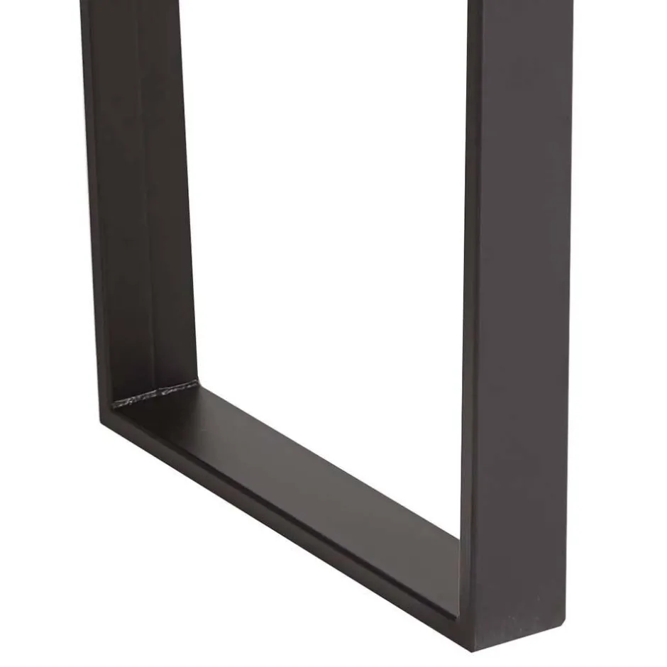 Mit einer Höhe von 75 cm und einer Breite, die je nach Ihrer Wahl zwischen 140 cm und 220 cm variiert, bietet „Sympatia“ genügend Platz für gemütliche Familienessen oder stilvolle Dinnerpartys. Die massive Tischplatte ohne Mittelfuge und die attraktive Baumkante verstärken den Eindruck, dass dieses Stück direkt aus der Natur in Ihr Zuhause transportiert wurde. Das robuste u-förmige Metallbügelgestell in Schwarz setzt einen markanten Kontrast zur natürlichen Tischplatte und unterstreicht den industriellen Charme des Möbelstücks.