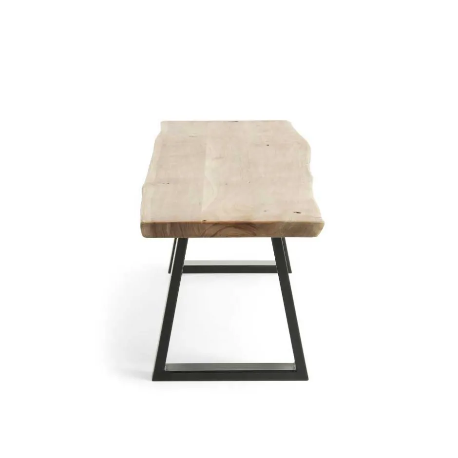 Die Kombination aus lebendiger Massivholz-Oberfläche und einem schwarz pulverbeschichteten Stahlgestell in Trapezform macht die Sitzbank „Dumassa“ zu einem wahren Highlight. Der Materialmix aus Holz und Metall setzt stilvolle Akzente und passt perfekt zu verschiedenen Einrichtungsstilen, sei es modern, rustikal oder industriell.