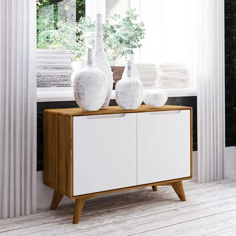Moderne 2-türige Kommode in Weiß & Wildeiche – Diesta^Wohnen