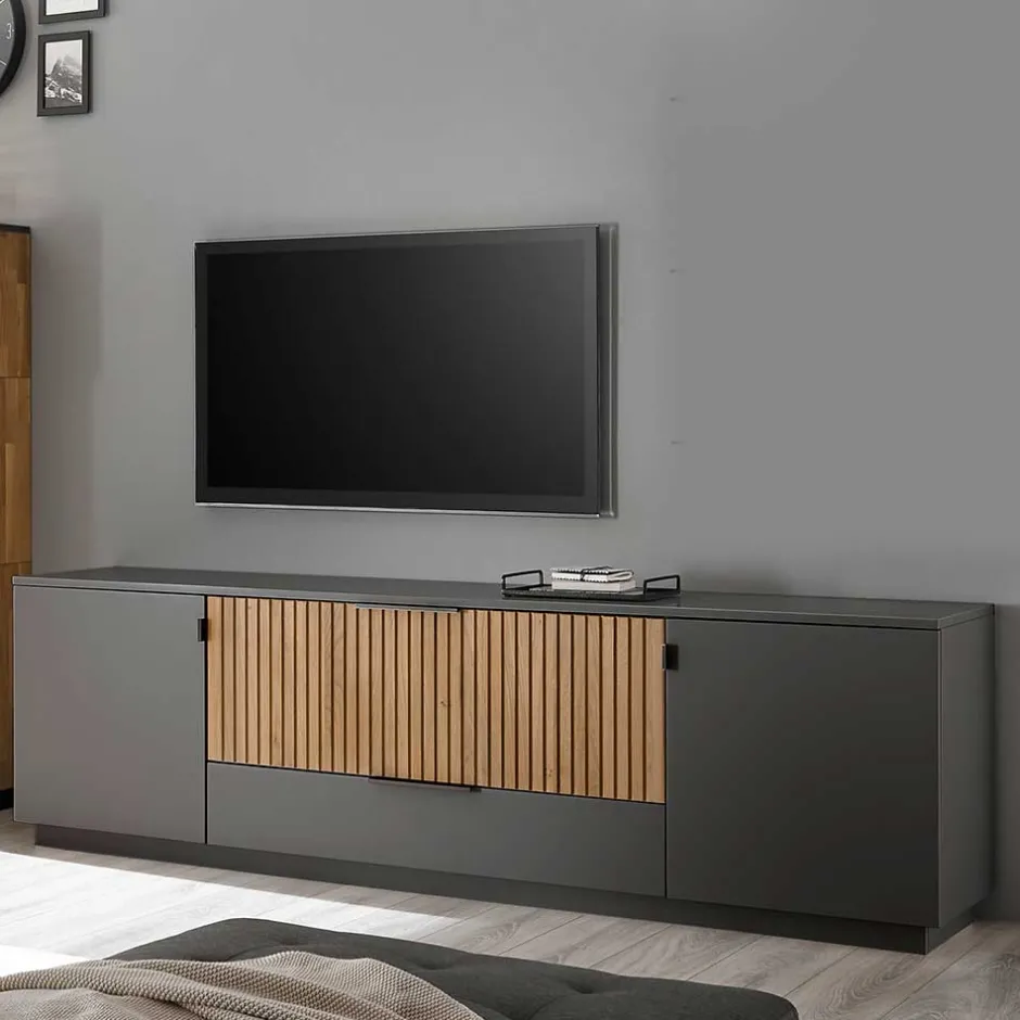 - Ausgezeichnetes TV-Lowboard in Anthrazit und Eiche Bianco