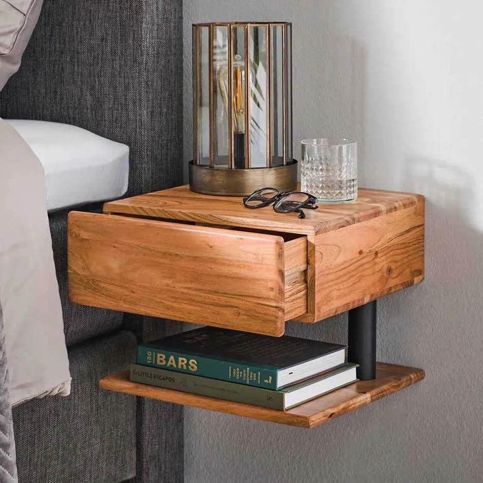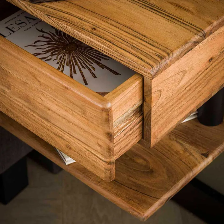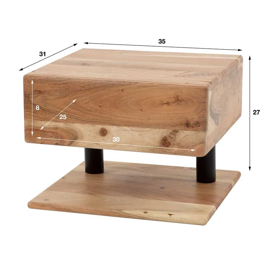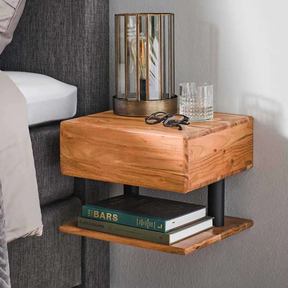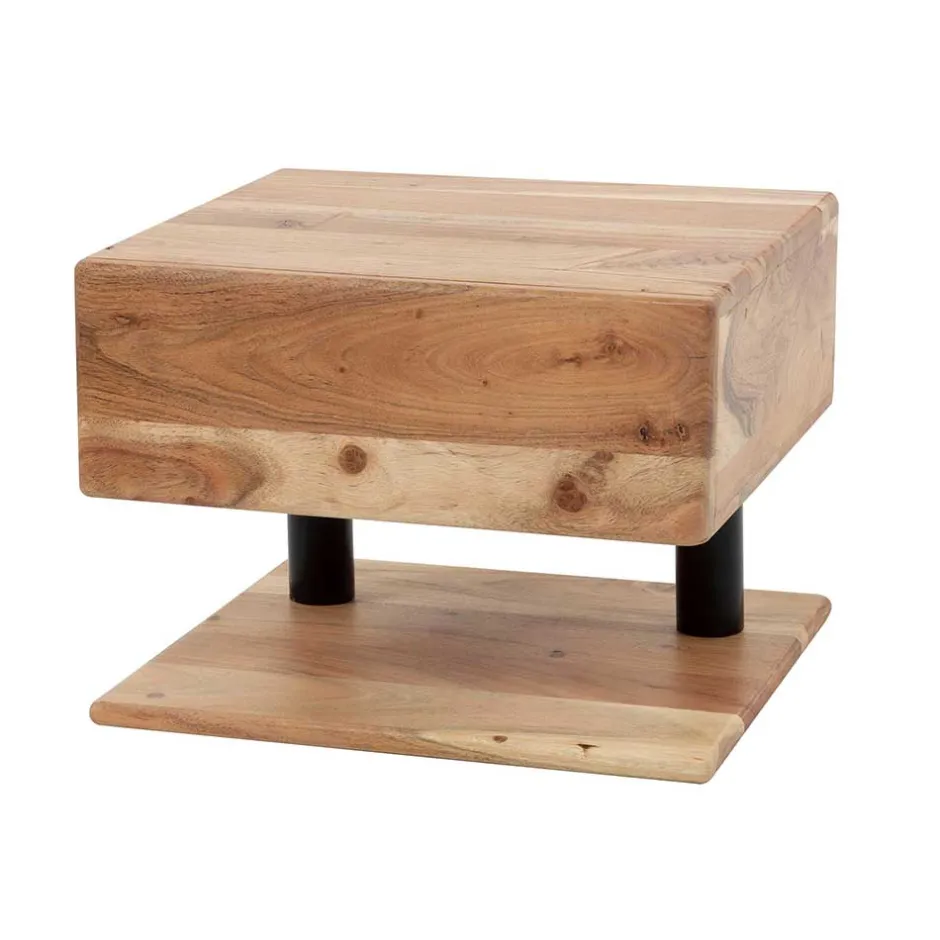 - Dekorative Nachtkommode in Akaziefarben und Schwarz