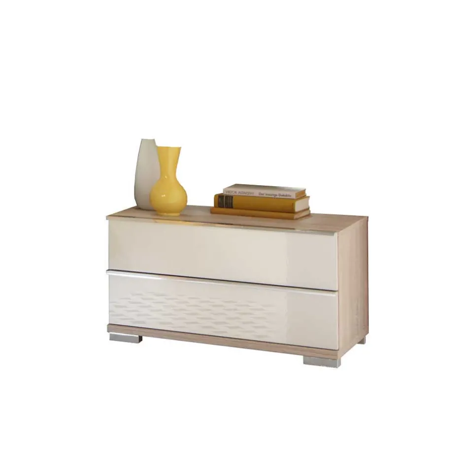 Mit ihrem modernen, klaren Look und der edlen Farbkombination aus Eiche Sägerau Dekor und weiß beschichtetem Glas schafft „Bosays“ eine helle, freundliche Atmosphäre. Die Verbindung von natürlicher Holzoptik mit glatten, glänzenden Oberflächen wirkt frisch, jung und absolut im Trend – ideal für alle, die ihrem Schlafzimmer eine stilvolle Note verleihen möchten.