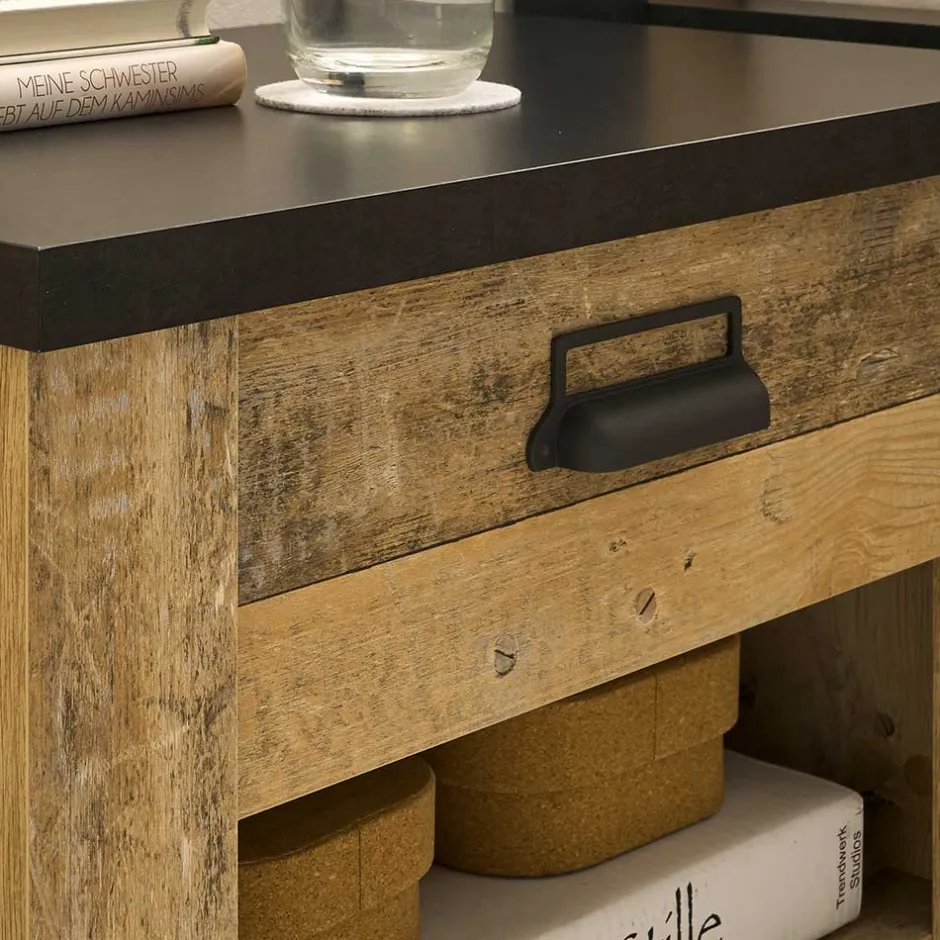 - Markante Nachtkommode in Altholzoptik verwittert und Anthrazit