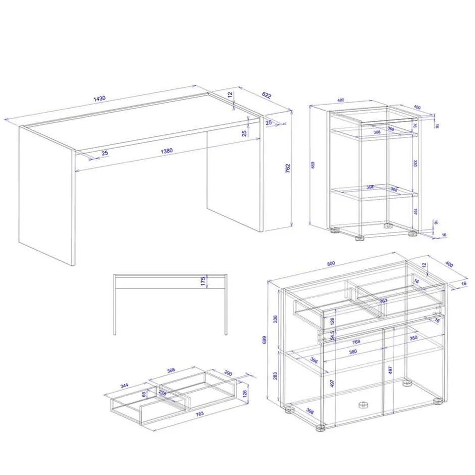 Office Schreibtisch & Regal & Kommode – Nonessia (dreiteilig)^Wohnen Outlet