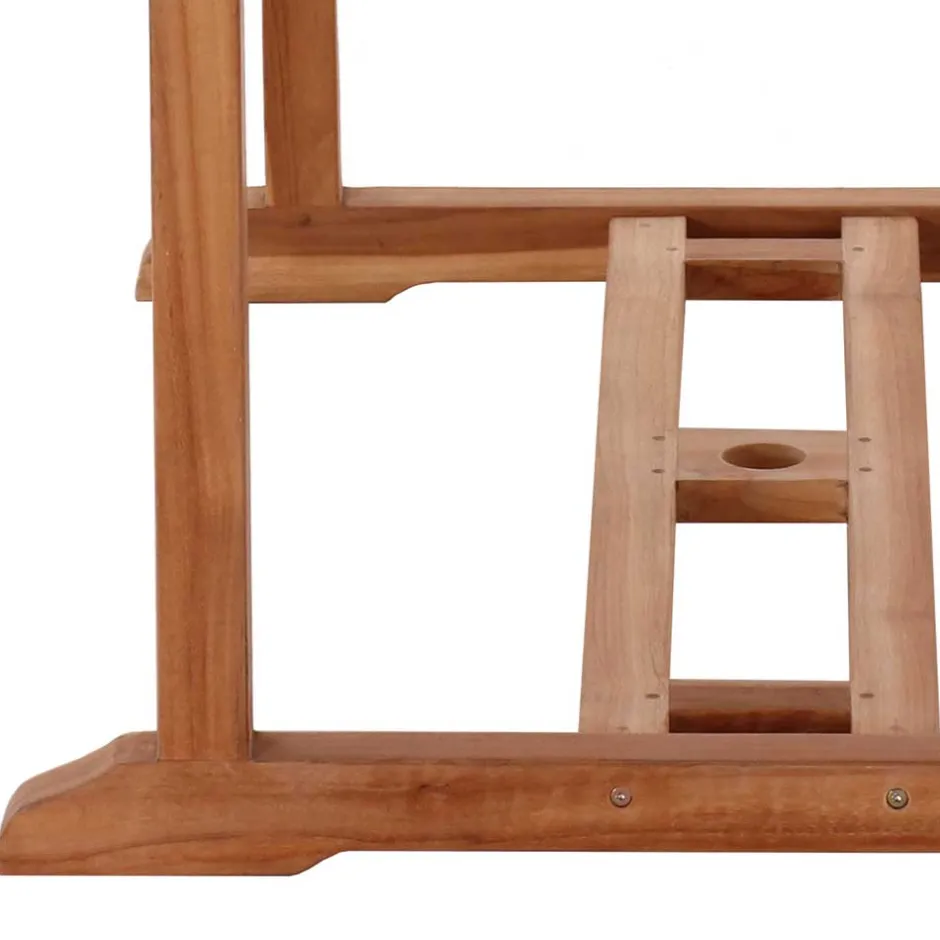 - Platte aus Massivholzlatten, im Auszug eine Öffnung für den Sonnenschirm (Durchmesser ca. 5 cm)