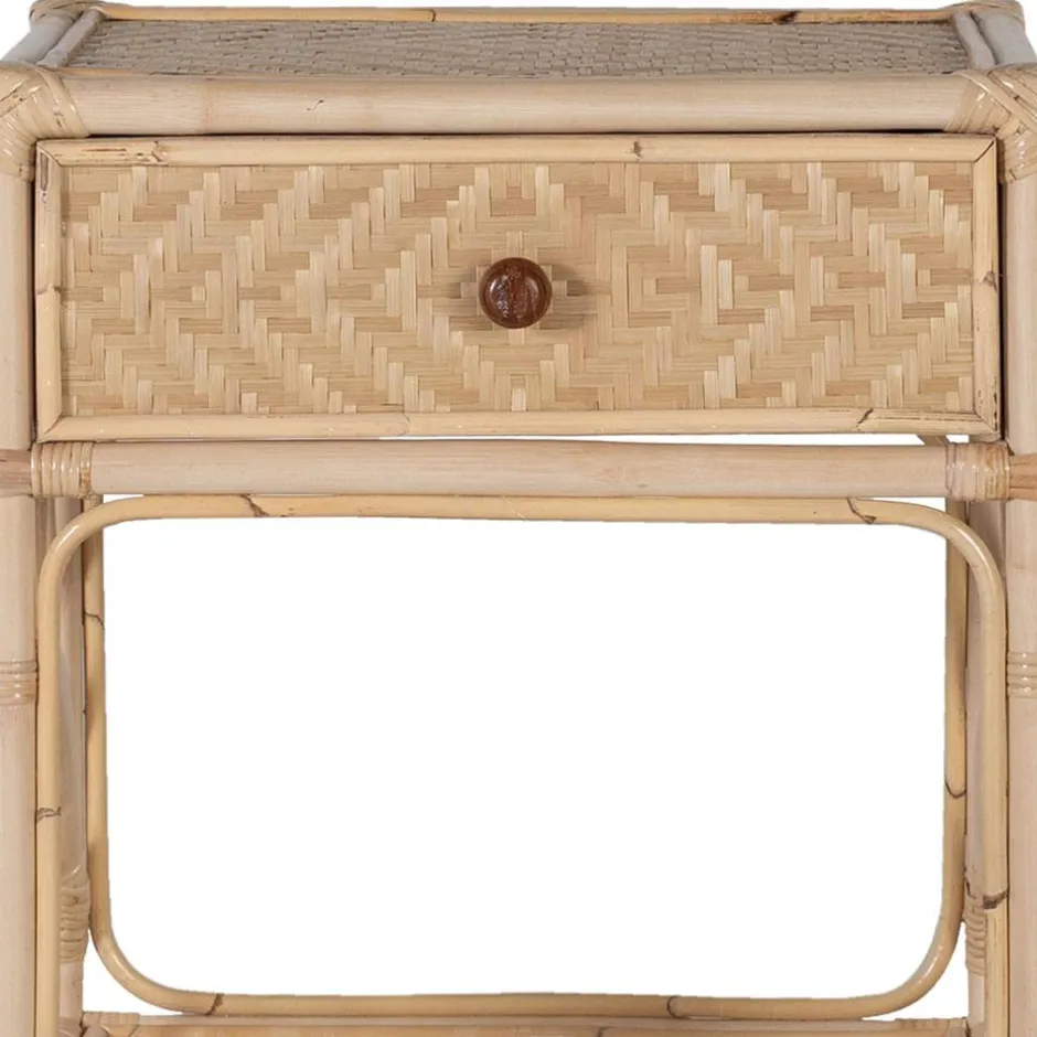 Die Rattan-Nachtkommode „Robin“ überzeugt nicht nur mit ihrem ansprechenden Design, sondern auch mit einer durchdachten Aufteilung. Eine geräumige Schublade bietet Platz für persönliche Gegenstände, während das offene Fach darunter zusätzlichen Stauraum für Bücher, Zeitschriften oder Deko-Accessoires bereithält. So haben Sie alles, was Sie für eine entspannte Nachtruhe benötigen, stets griffbereit.