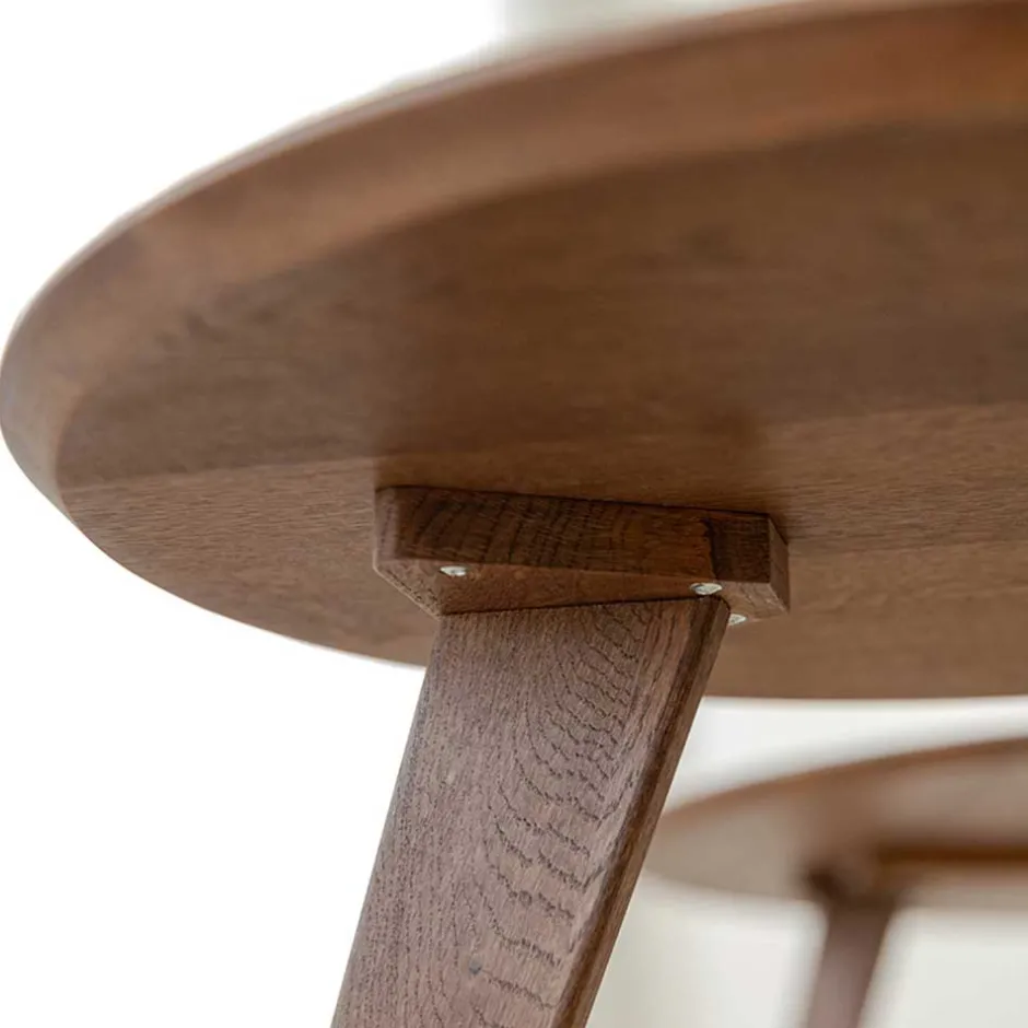 Gefertigt aus hochwertigem Eiche Massivholz, überzeugt der Tisch mit seiner natürlichen Ausstrahlung und Langlebigkeit. Das braun geölte Finish schützt die Oberfläche und hebt die charakteristischen Maserungen des Holzes hervor. Die Tischplatte, die eine Stärke von ca. 2 cm aufweist, ist nicht nur ein echter Hingucker, sondern sorgt auch für Stabilität und eine lange Lebensdauer. Die sorgfältige Verarbeitung der Schweizer Kante rundet das Design ab und verleiht dem Tisch seinen besonderen Charme.