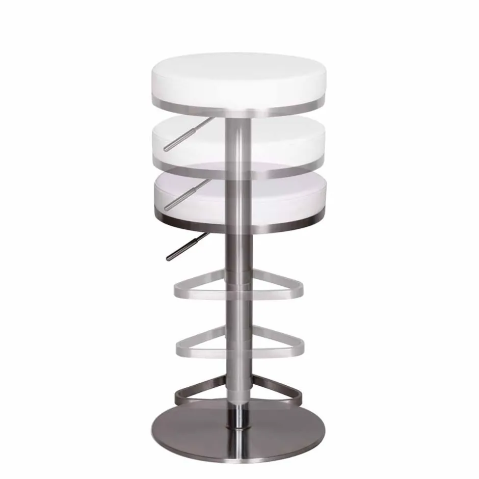 Die Kombination aus einem verchromten Edelstahlgestell und einer gepolsterten Sitzfläche mit weißem Kunstlederbezug (100% Polyurethan) steht für exzellente Verarbeitung und edles Design. Kunstleder bietet zahlreiche Vorteile: Es ist nicht nur besonders pflegeleicht, sondern auch langlebig und robust gegenüber Abnutzung. Außerdem überzeugt es durch seine unempfindliche Oberfläche, die selbst bei intensiver Nutzung lange wie neu aussieht. Ein weiterer Vorteil von Kunstleder ist, dass es einfach zu reinigen ist – ein feuchtes Tuch genügt, um Flecken oder Verschmutzungen zu entfernen.