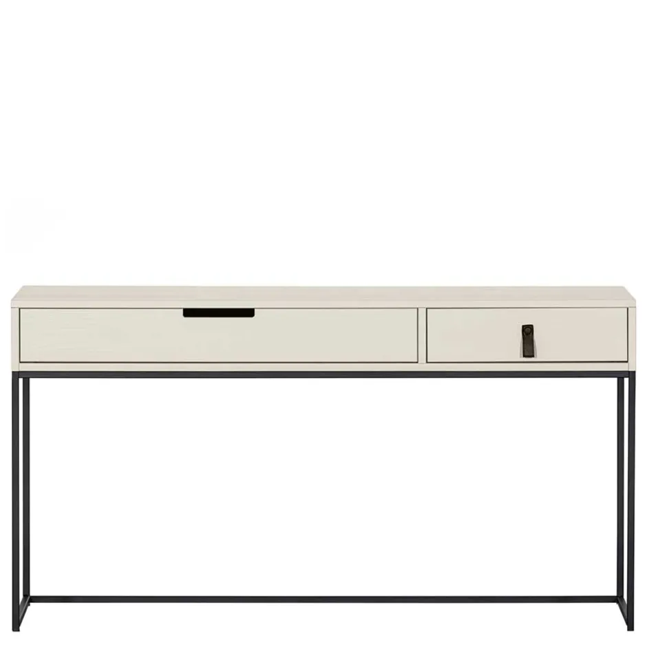 Ein aufgeräumter Arbeitsplatz ist der Schlüssel zu konzentriertem Arbeiten – und genau dabei unterstützt Sie „Lergavano“. Unter der großzügigen 140 x 40 cm großen Arbeitsfläche befinden sich zwei unterschiedlich große Schubladen, die für Ordnung sorgen. Während die linke Schublade besonders geräumig ist und Platz für größere Unterlagen bietet, eignet sich die rechte, etwas kleinere Schublade ideal für Büromaterial oder persönliche Gegenstände. Das Design ist dabei ebenso durchdacht wie die Funktion: Die kleinere Schublade lässt sich mit einer Kunstleder-Griffschlaufe öffnen, während die größere Schublade über eine dezente Aussparung an der Front bedient wird.