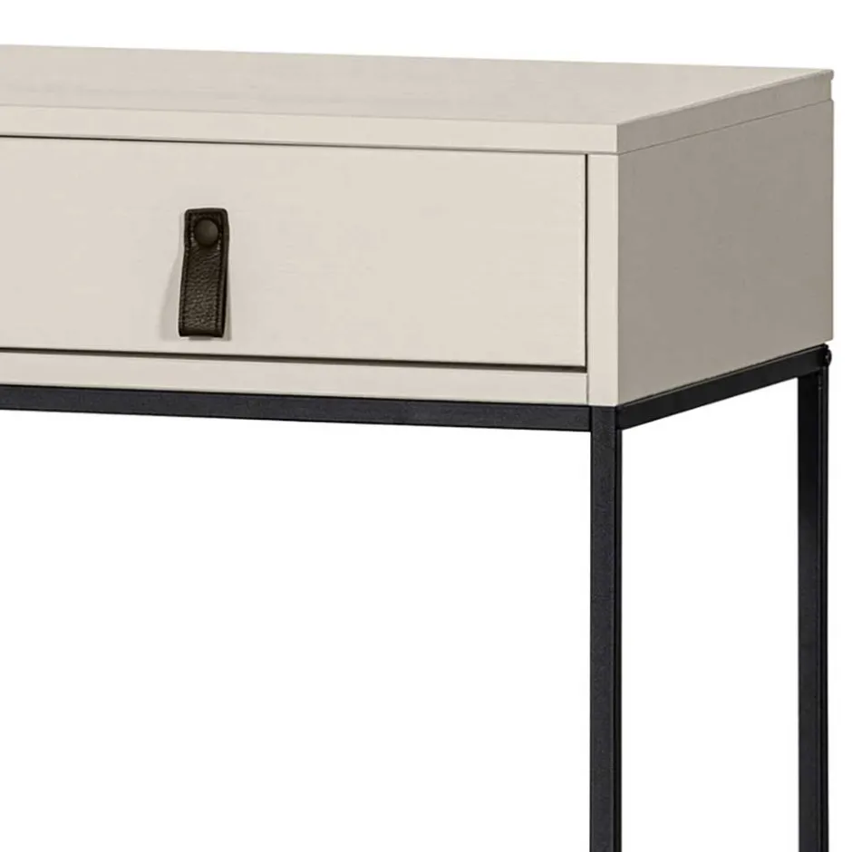 Der Schreibtisch besteht aus einer gelungenen Mischung aus massivem Kiefernholz, widerstandsfähigem Holzwerkstoff und pulverbeschichtetem Metall. Während die lackierten Oberflächen nicht nur optisch ansprechend, sondern auch besonders pflegeleicht sind, sorgt das stabile Metallgestell in Schwarz für einen sicheren Stand. Die hochwertige Verarbeitung garantiert eine lange Lebensdauer und macht den Schreibtisch zu einer verlässlichen Basis für Ihre Arbeit.