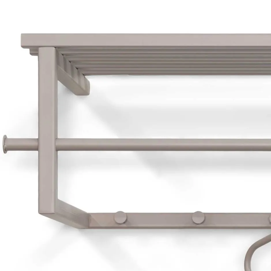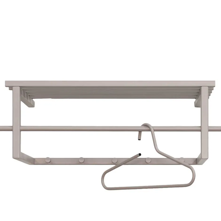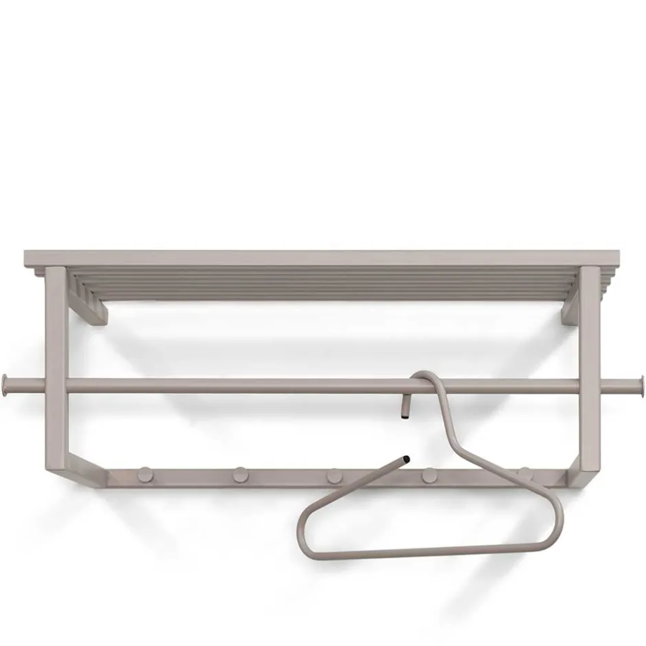 - Die Breite der Stange beträgt 76 cm, die Breite der Lamellen auf der Oberseite der Garderobe 71 cm