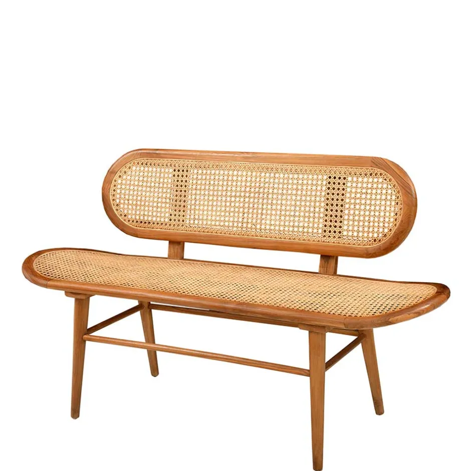 Gefertigt aus massivem Teakholz überzeugt die Bank nicht nur optisch, sondern auch durch ihre Langlebigkeit und Stabilität. Die hochwertige Verarbeitung zeigt sich in jedem Detail – vom fein geschwungenen Rahmen bis hin zur raffiniert gearbeiteten Sitzfläche. Diese ist ebenso wie die kurze Rückenlehne oval geformt und mit charmantem Wiener Geflecht aus natürlichem Rattan versehen. Das Geflecht sorgt nicht nur für eine optische Leichtigkeit, sondern auch für angenehmen Sitzkomfort. Die natürlichen Materialien machen „Feliana“ besonders pflegeleicht und widerstandsfähig – ideal für den täglichen Gebrauch.