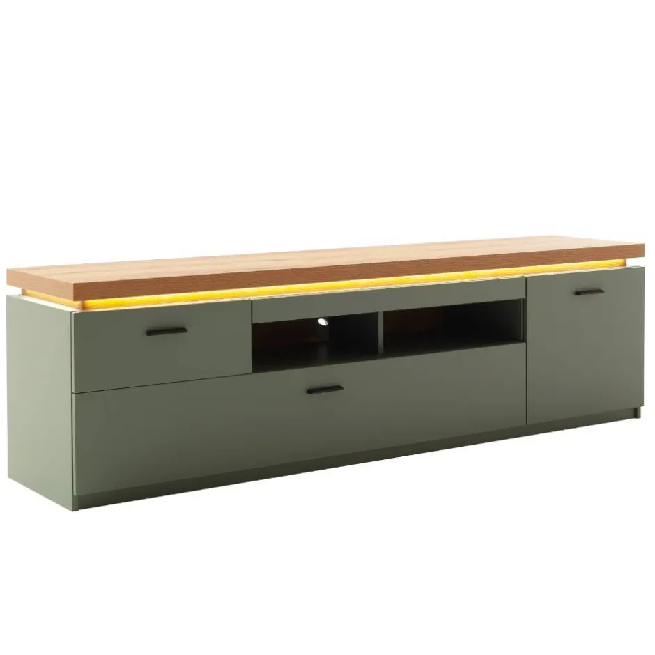 - Großzügiges TV Board in Graugrün und Eichefarben
