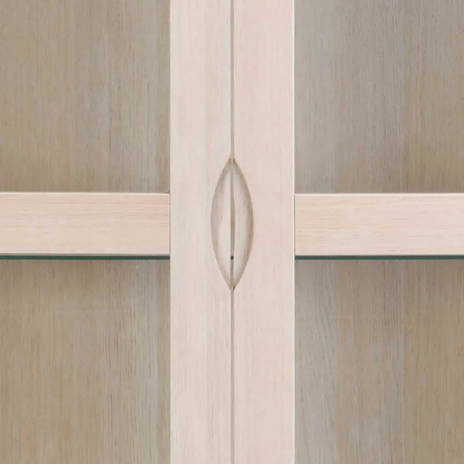 Die Vitrine „Pessoa I“ wird aus sorgfältig ausgewählten Materialien gefertigt, um Ihnen ein Möbelstück von höchster Qualität zu bieten. Der Korpus ist aus MDF (Mitteldichte Holzfaserplatte) gefertigt, was für Stabilität und Langlebigkeit sorgt. Die Oberflächen des Korpus und der Front sind mit echtem Eichenholzfurnier in White Wash Optik behandelt. Das bedeutet, dass die natürliche Schönheit des Holzes bewahrt bleibt und gleichzeitig eine leichte, helle Optik entsteht. Dieser Prozess wird mit Hartwachsöl abgerundet, um die Oberfläche zu schützen und ihr einen sanften Glanz zu verleihen.