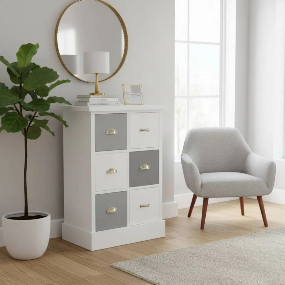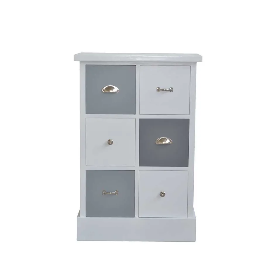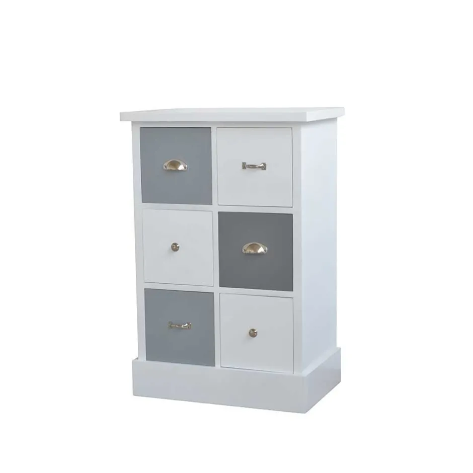 - Mit fünf Schubladen auf Holzauszug, unterschiedliche farbliche Gestaltung, Innenmaße: BxHxT: ca. 21×21,5×27,5 cm