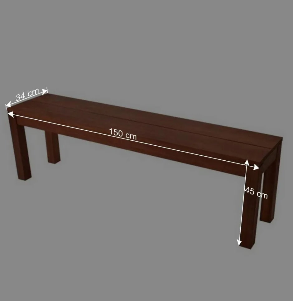 Mit ihren Maßen von 150 cm Breite, 45 cm Höhe und 34 cm Tiefe bietet die Holzbank „Tamyno“ ausreichend Platz für entspannte Stunden. Ihre angenehme Sitzhöhe von ca. 45 cm und die Sitztiefe von 34 cm sorgen für einen hohen Komfort, der Sie zum Verweilen einlädt. Stellen Sie sich vor, Sie setzen sich nach einem langen Tag auf diese solide Sitzfläche und genießen den Moment der Ruhe. Das Vierfußgestell garantiert nicht nur Sicherheit, sondern verleiht der Bank eine edle Stabilität. Jedes Detail ist durchdacht, damit Sie sich rundum wohlfühlen.