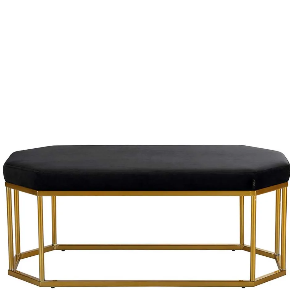 Bank „Coal“ ist nicht einfach nur ein Sitzmöbel – sie ist ein echtes Design-Statement. Inspiriert vom edlen Retrostil, verbindet sie die klaren Linien der Mid-Century-Ästhetik mit modernen Akzenten. Die Kombination aus der achteckigen Form, dem tiefschwarzen Samtbezug und dem goldfarben pulverbeschichteten Metallgestell schafft eine harmonische Balance aus Eleganz, Glamour und markanter Individualität.