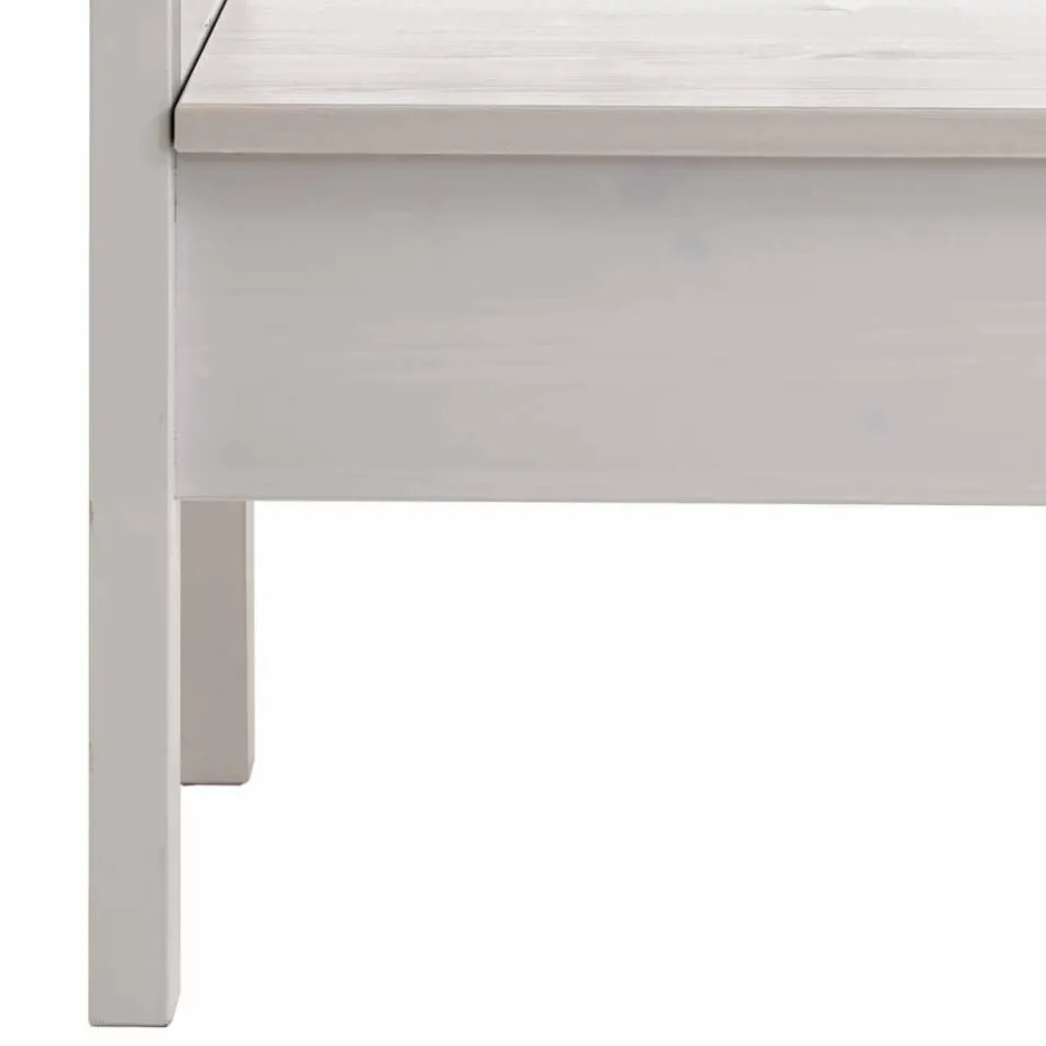 Massive nordische Kiefer bildet das Herzstück dieser Bank. Diese Holzart ist nicht nur robust und langlebig, sondern auch für ihre feine, durchscheinende Maserung bekannt, die dem Möbelstück eine edle Optik verleiht. Die sorgfältige Beizung und Lackierung in Weiß sorgt für eine glänzende, pflegeleichte Oberfläche, die gleichzeitig die natürliche Struktur des Holzes betont. Die Kombination aus Stabilität und Ästhetik macht die „Onesti“ Bank zu einem echten Blickfang, der in jedem Raum zum Highlight wird.