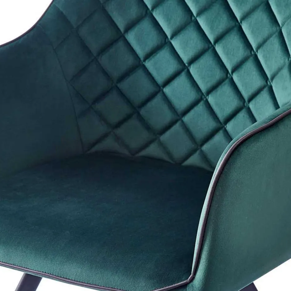 Der Stuhl begeistert nicht nur durch sein ansprechendes Design, sondern auch durch seine sorgfältige Materialwahl. Der edle Samtbezug aus 100 % Polyester sorgt für eine angenehm weiche Haptik, während die aufwendige Rautensteppung und der schwarze Keder dem Stuhl eine exklusive Note verleihen. Dank der strapazierfähigen und pflegeleichten Oberflächen bleibt das Möbelstück auch bei häufiger Nutzung lange schön. Die komfortable Schaumstoffpolsterung macht das Sitzen zu einem echten Vergnügen.