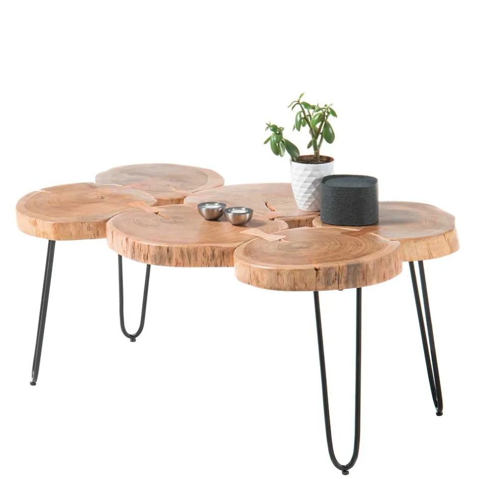 - Auffallender Couchtisch in Akaziefarben und Schwarz