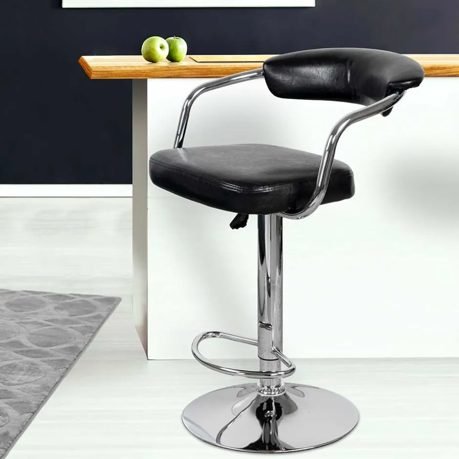 - Gemütliches Barstuhl Set in Schwarz und Chromfarben