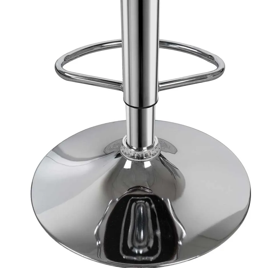 Mit einer variablen Sitzhöhe von 63 bis 84 cm lässt sich der Barhocker „Devi“ individuell anpassen – perfekt für jede Thekenhöhe. Die extra hohe Sitzhöhe von rund 81 cm sorgt für ein besonders aufrechtes, bequemes Sitzgefühl. Dank der 360-Grad-Drehfunktion bleibt man stets flexibel, ohne aufzustehen – ideal für gesellige Abende, bei denen man sich gerne im Gespräch zuwendet. Das standsichere, verchromte Tellergestell mit integrierter Fußstütze bietet sicheren Halt und ein glänzendes Finish, das den modernen Retro-Look perfekt abrundet.
