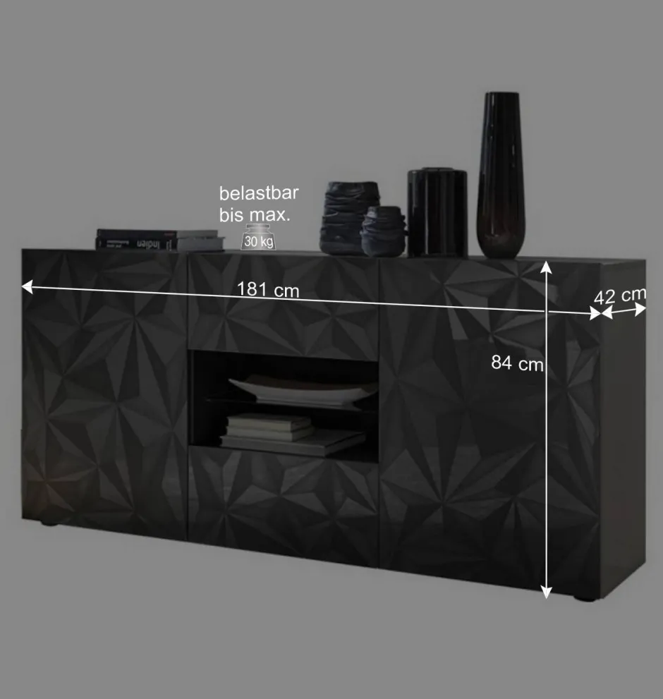 - Oberflächen lackiert in Anthrazit Hochglanz, Front mit aufwändigem Siebdruck gestaltet