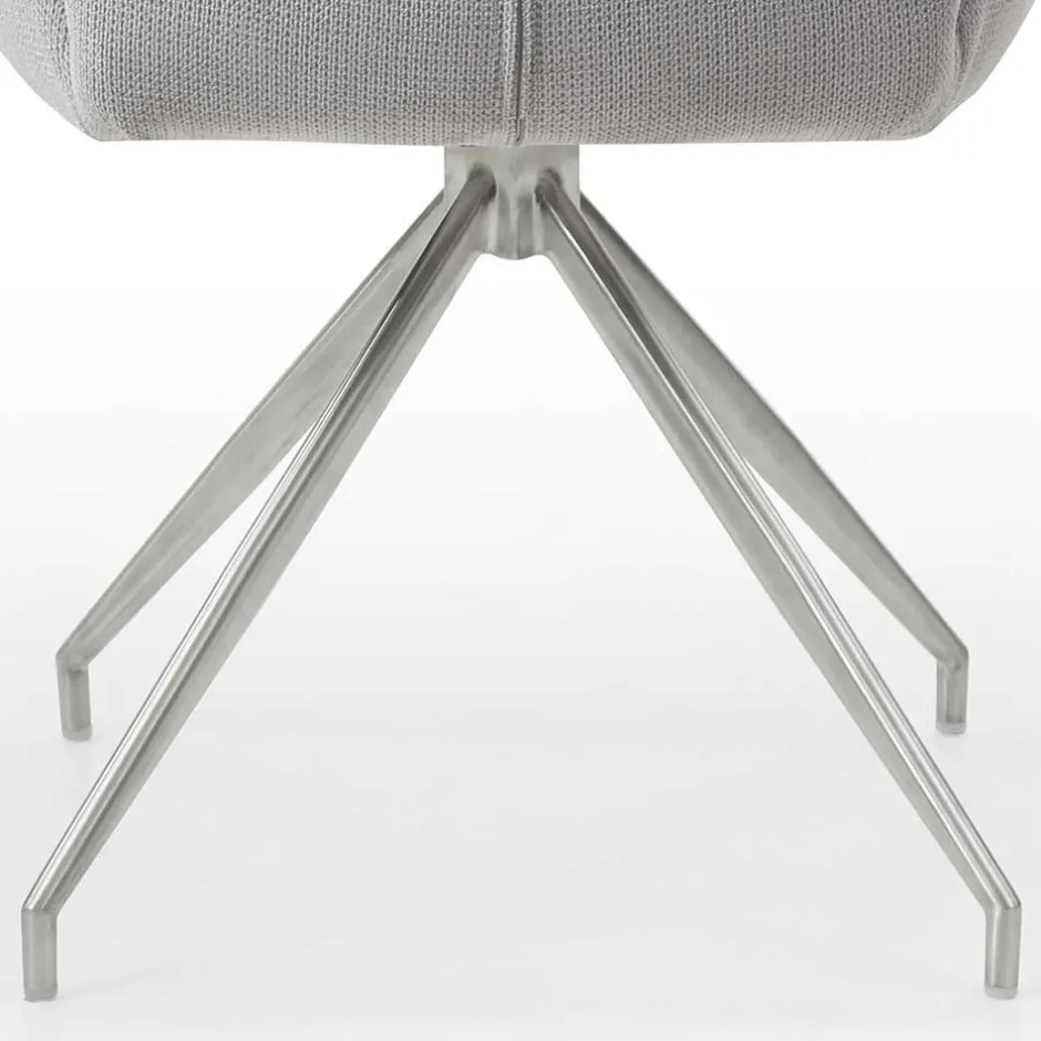 Ein besonderes Highlight der Stühle ist die praktische Drehfunktion: Um 180 Grad schwenkbar, ermöglichen sie eine flexible Bewegungsfreiheit am Tisch. So können Sie sich bequem zur Seite drehen, ohne den Stuhl verrücken zu müssen. Das stabile Vierfußgestell in Spiderform aus rostfreiem Edelstahl sorgt für eine sichere Basis und unterstreicht die moderne, industrielle Optik. Mit einer Belastbarkeit von bis zu 110 kg sind die Stühle zudem besonders robust.