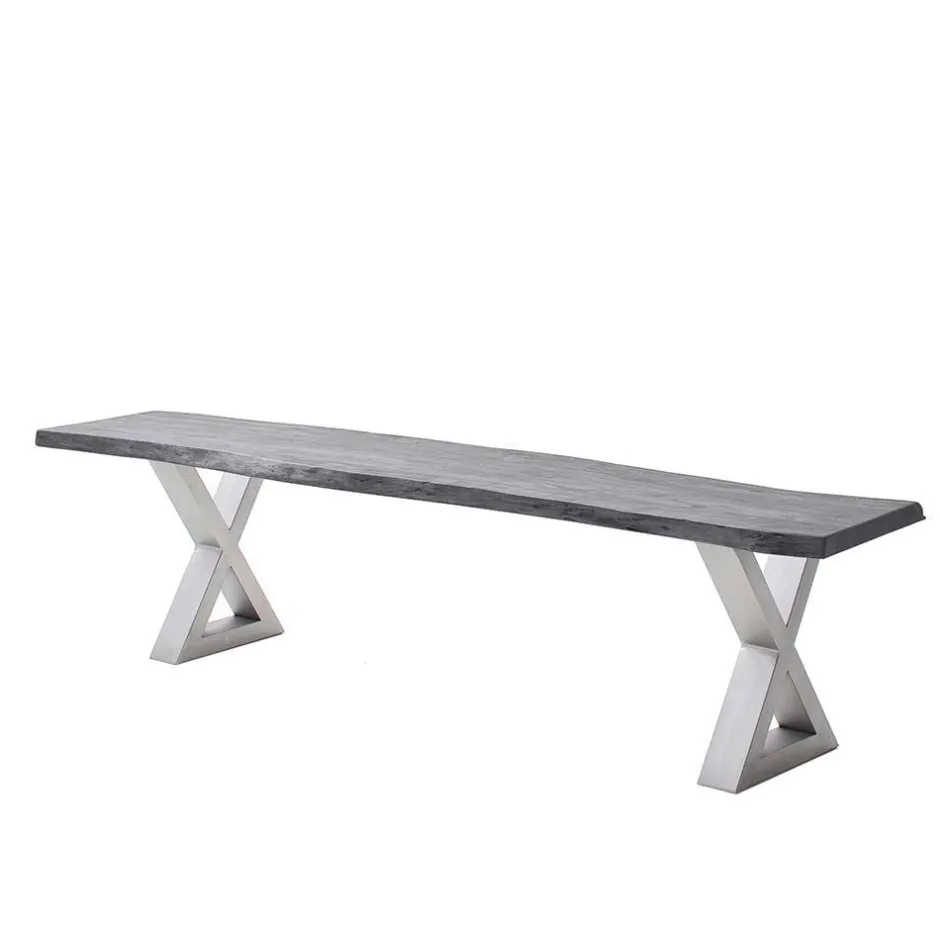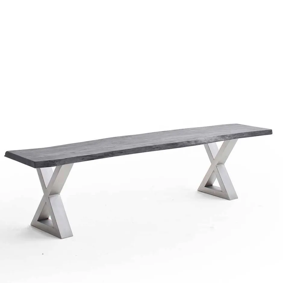 Wohnen Esstisch Sitzbank in Akazie Grau mit Baumkante - Lorencia