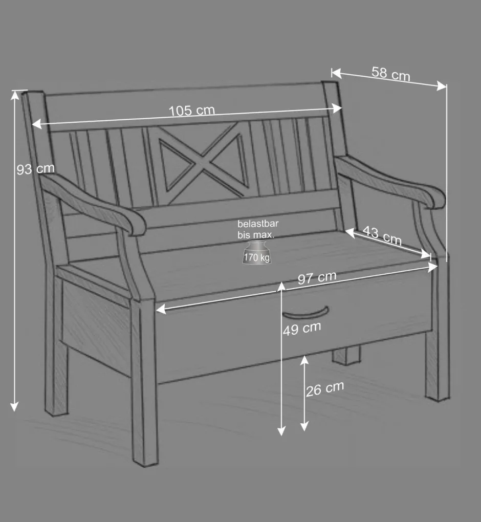 - Abstand vom Boden bis Unterkante Bank: ca. 26 cm
