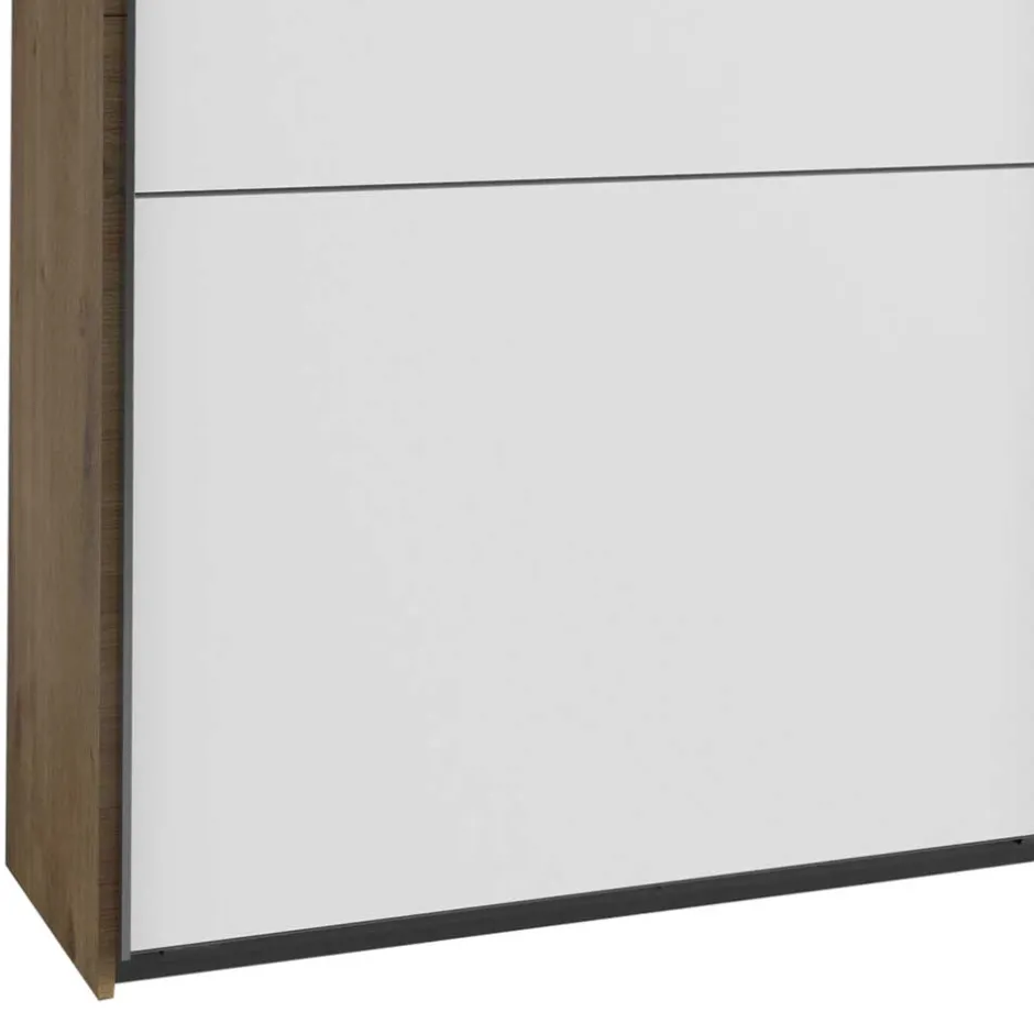 „Stufania“ besticht durch seine interessante zweifarbige Optik. Die Kombination aus modernen weißen Elementen und dem warmen Ton der Plankeneiche bringt Stil und Eleganz in jedes Schlafzimmer. Dieser Schrank ist nicht nur ein Möbelstück, sondern ein echter Blickfang, der Ihre Raumgestaltung auf ein neues Niveau hebt.