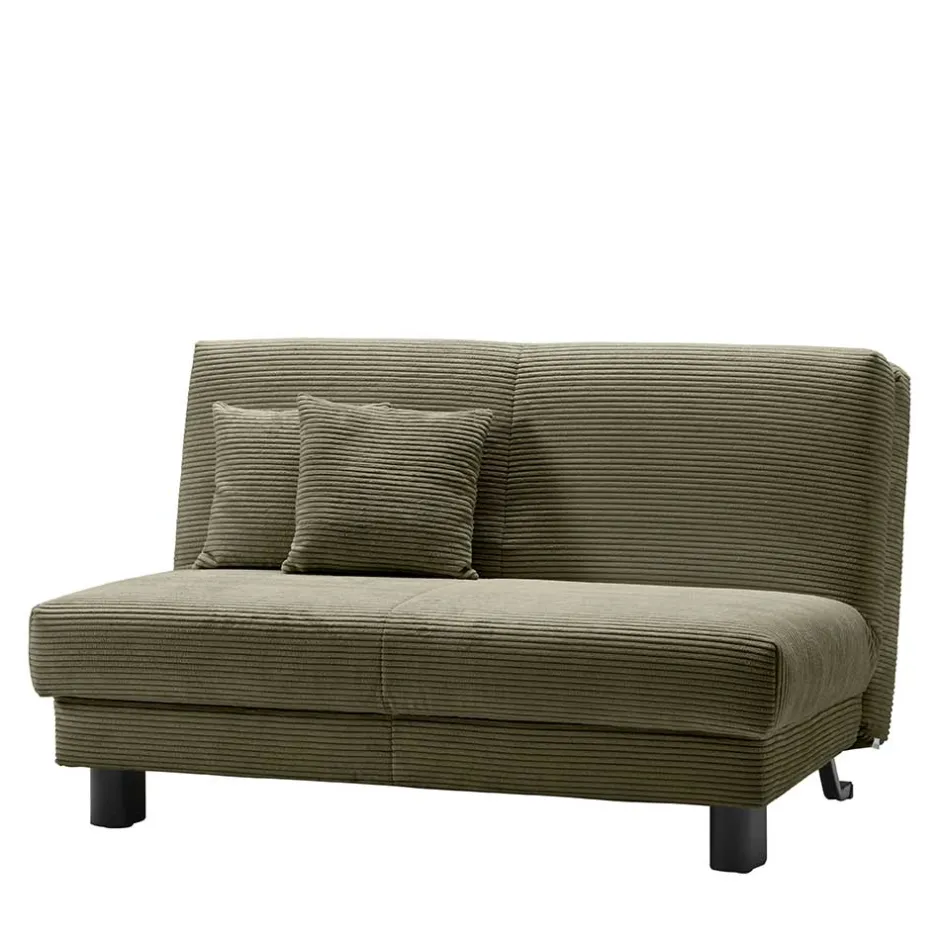 Die „Lubines“ ist frei im Raum stellbar, da der Rücken ebenfalls mit dem Cord-Bezug versehen ist. Dies ermöglicht eine flexible Platzierung im Raum. Das schmale Design ohne Armlehnen und die beiden mitgelieferten Kissen (40×40 cm) aus dem gleichen hochwertigen Cord-Material machen die Couch besonders vielseitig. Ein weiteres Highlight ist die einfache Verwandlung in eine Schlafgelegenheit. Mit wenigen Handgriffen und durch vier integrierte Rollen lässt sich die Couch nach vorne herausziehen und in ein bequemes Gästebett verwandeln. Die Liegefläche beträgt dabei großzügige 140×200 cm und bietet ausreichend Platz für Übernachtungsgäste.