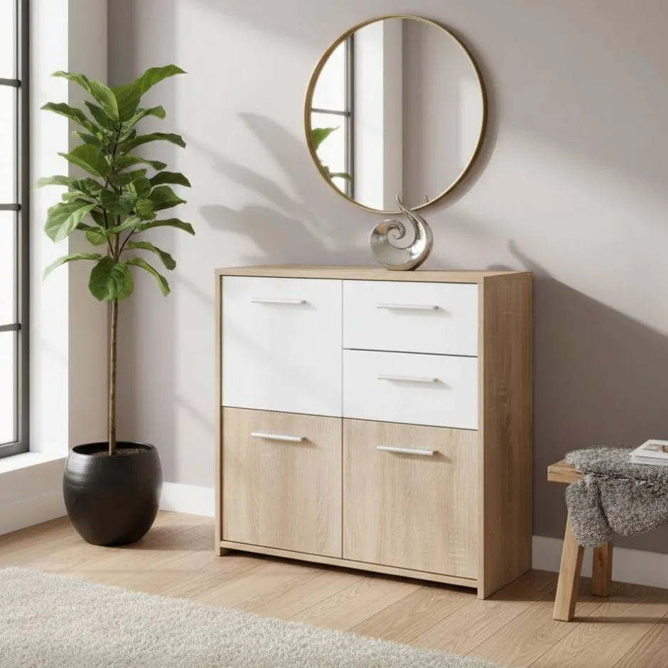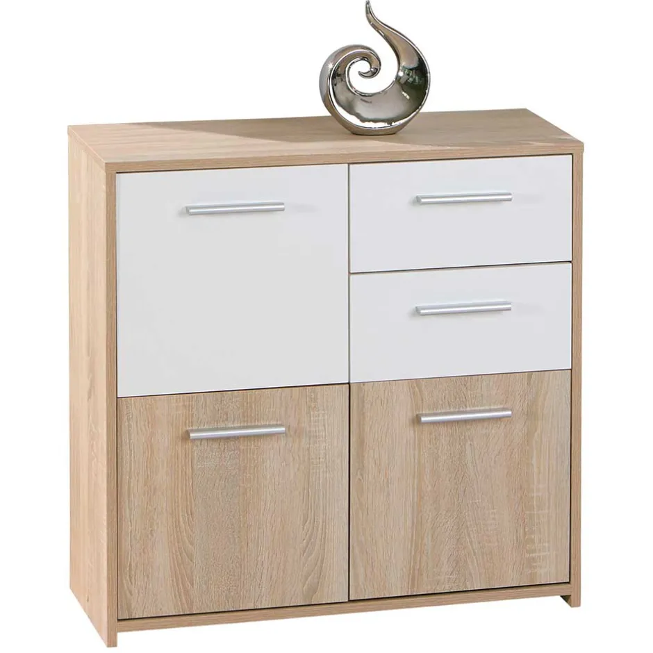 - Dezente Kommode in Weiß und Sonoma Eiche
