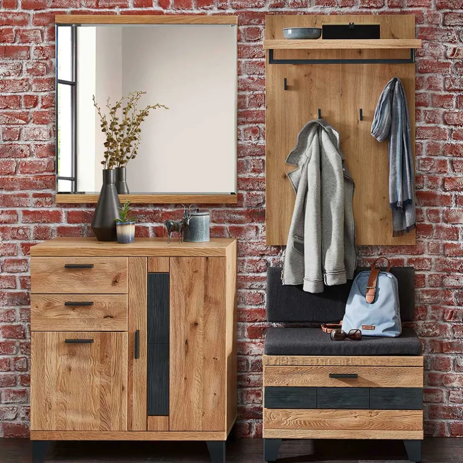 - Apartes Garderoben Set in Wildeichefarben und Dunkelgrau