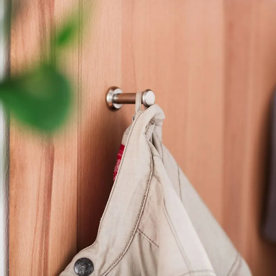 Mit sechs silberfarbenen Metall-Kleiderhaken und einer stabilen Kleiderstange bietetHippagenügend Platz für Jacken, Mäntel und Accessoires. Die verstellbaren Hängebeschläge erleichtern die Wandmontage, sodass Sie das Paneel nach Ihren Bedürfnissen ausrichten können.